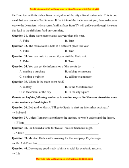 Chúng tôi đảm bảo đủ số lượng đề đã cam kết hoặc có thể nhiều hơn, tất cả có BẢN WORD, LỜI GIẢI CHI TIẾT và tải về dễ dàng.