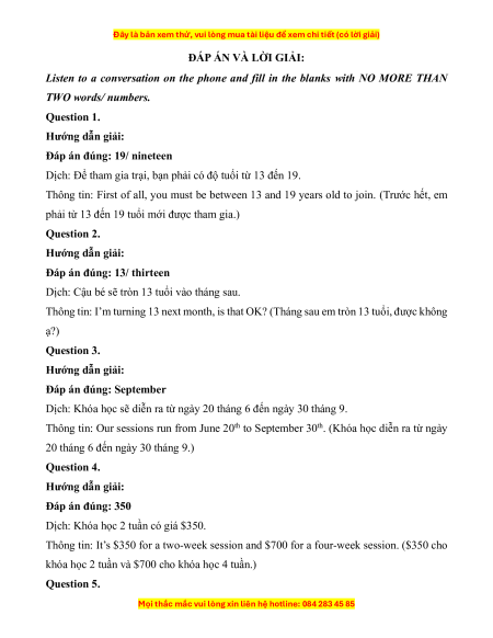 Listen to a conversation on the phone and fill in the blanks with NO MORE THAN