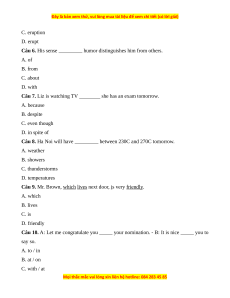 Câu 7. Liz is watching TV ________ she has an exam tomorrow. A. because B. despite C. even though D. in spite of