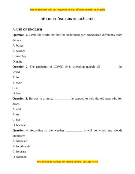 ĐỀ THI: PHÒNG GD&ĐT CHÂU Đ C Ứ A. USE OF ENGLISH