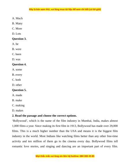 A. Much B. Many C. More D. Lots Question 3. A. be B. were C. been D. was Question 4. A. some B. every C. both D. other Question 5. A. made B. make C. making D. makes