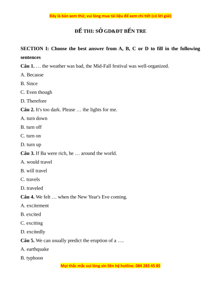 ĐỀ THI: S G Ở D&ĐT B N Ế TRE