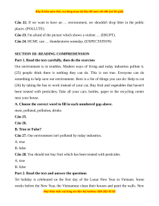 Câu 28. You should not buy fruit which has been treated with pesticides.