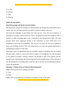 Câu 4. Now she's a lecturer for the Banking University. A. True B. False