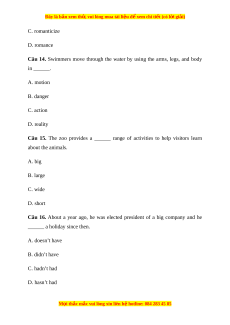 Câu 13. If you enjoy reading stories about love affairs, a ______ is the right one for you. A. romantic B. romantically M i ọ thắc m c