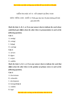 Đây là bản xem th , vu ử i lòng mua tài li u ệ đ xe ể m chi ti t ế (có l i ờ gi i ả ) KIỂM TRA H C Ọ KỲ II - S G Ở D&ĐT QU N Ả G NAM MÔN: TI N Ế G ANH - KH I Ố 12 Th i