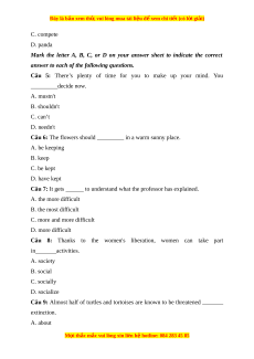 Câu 9: Almost half of turtles and tortoises are known to be threatened _______ extinction. A. about M i ọ thắc m c