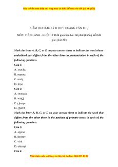 KIỂM TRA HỌC KỲ II THPT HOÀNG VĂN THỤ MÔN: TI N Ế G ANH - KH I Ố 12 Th i