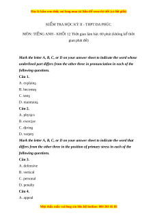 KIỂM TRA HỌC KỲ II - THPT ĐA PHÚC MÔN: TI N Ế G ANH - KH I Ố 12 Th i