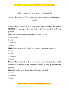 MÔN: TI NG ANH - KH I 12 Th i gian làm bài: 60 phút (không k th i gianẾ Ố ờ ể ờ