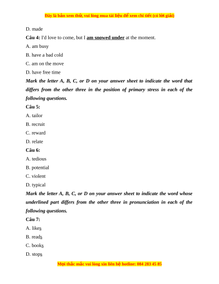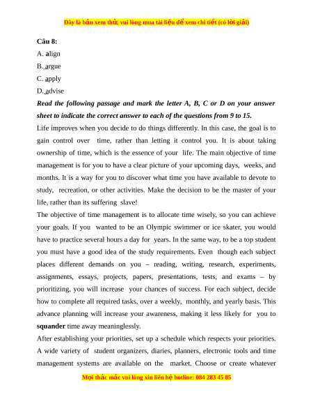Đây là bản xem th , vu ử i lòng mua tài li u ệ đ xe ể m chi ti t (c ế ó l i ờ gi i ả ) Câu 8: A. align B. argue C. apply D. advise