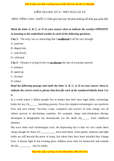 MÔN: TI NG ANH - KH I 12 Th i gian làm bài: 60 phút (không k th i gian phát đ )Ế Ố ờ ể ờ ề