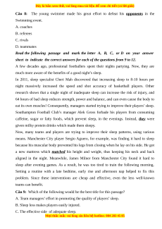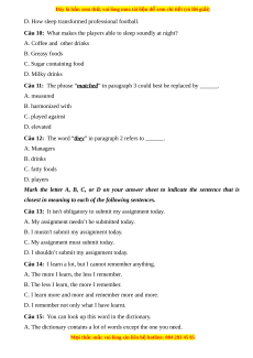 Câu 10: What makes the players able to sleep soundly at night? A. Coffee and other drinks B. Greasy foods C. Sugar containing food D. Milky drinks
