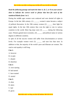 road to real equality is still long. Câu 1: A. however B. in spite C. despite D. therefore Câu 2: A. were starting B. had started C. have started D. started Câu 3: A. done B. taken C. had D. given M i ọ thắc m c