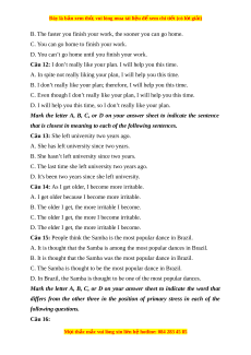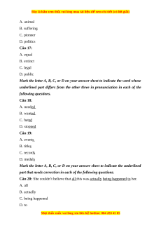 Đây là bản xem th , vu ử i lòng mua tài li u ệ đ xe ể m chi ti t ế (có l i ờ gi i ả ) Câu 4: A. social B. socially C. society D. sociable Câu 5: A. most B. much C. more D. many