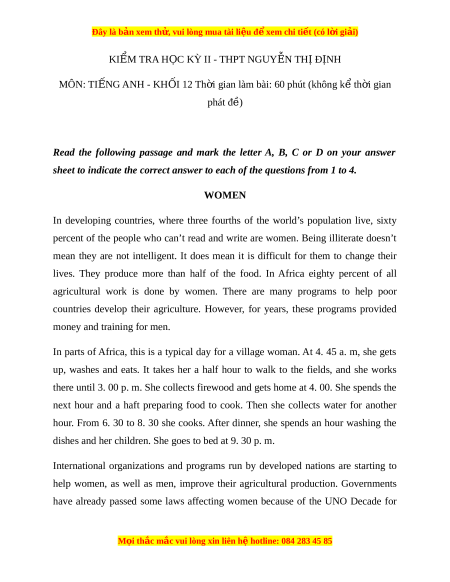 Đây là bản xem th , vu ử i lòng mua tài li u ệ đ xe ể m chi ti t (c ế ó l i ờ gi i ả ) KIỂM TRA H C Ọ KỲ II - THPT NGUY N Ễ TH Đ Ị N Ị H MÔN: TI N Ế G ANH - KH I Ố 12 Th i