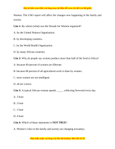 Câu 3: A typical African woman spends _____ collecting firewood every day. A. 3 hour B. 2 hour C. 1 hour D. 4 hour