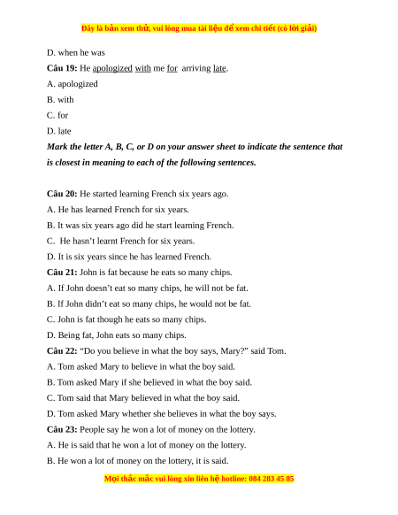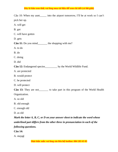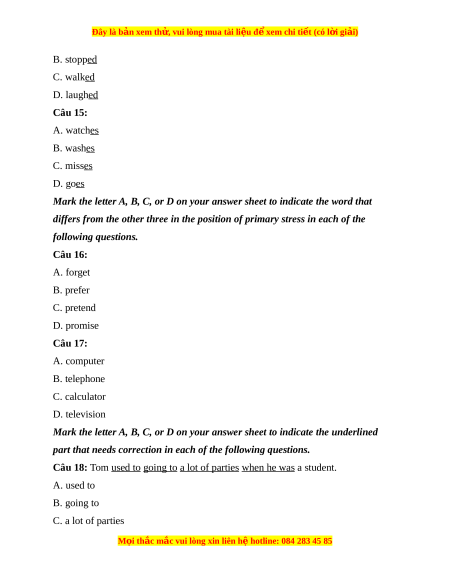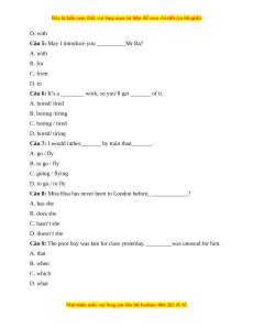 Đây là bản xem th , vu ử i lòng mua tài li u ệ đ xe ể m chi ti t (c ế ó l i ờ gi i ả ) B. stopped C. walked D. laughed Câu 15: A. watches B. washes C. misses D. goes