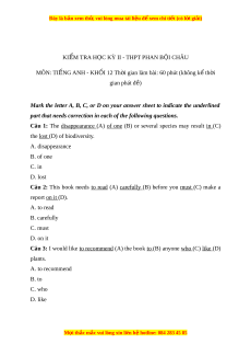 KIỂM TRA HỌC KỲ II - THPT PHAN B I Ộ CHÂU MÔN: TI N Ế G ANH - KH I Ố 12 Th i