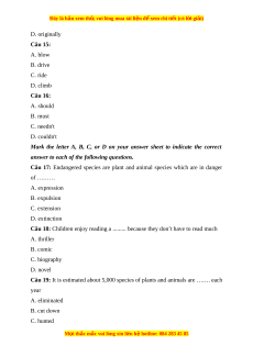 Câu 17: Endangered species are plant and animal species which are in danger