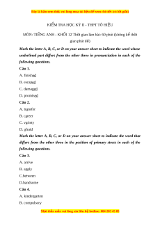 Đây là bản xem th , vu ử i lòng mua tài li u ệ đ xe ể m chi ti t ế (có l i ờ gi i ả ) KI M Ể TRA H C Ọ KỲ II - THPT TÔ HI U Ệ MÔN: TI N Ế G ANH - KH I Ố 12 Th i