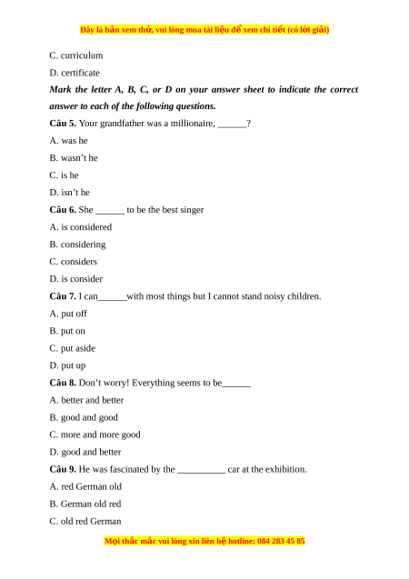 Đây là bản xem th , vu ử i lòng mua tài li u ệ đ xe ể m chi ti t ế (có l i ờ gi i ả ) C. curriculum D. certificate
