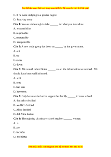 Câu 5: A new study group has been set ______ by the government. A. out B. up C. away D. down