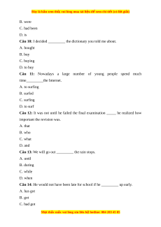 Câu 10: I decided _________ the dictionary you told me about. A. bought B. buy C. buying D. to buy