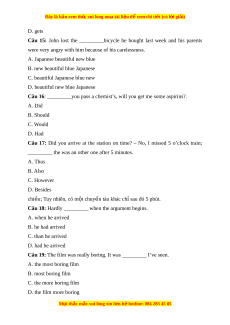 Câu 19: The film was really boring. It was _________ I’ve seen. A. the most boring film B. most boring film C. the more boring film D. the film more boring M i ọ thắc m c