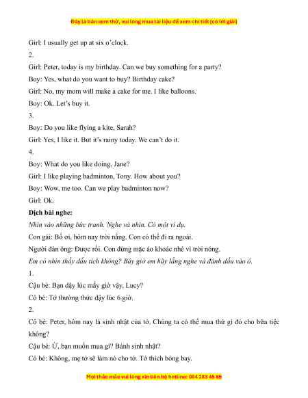 Girl: No, my mom will make a cake for me. I like balloons. Boy: Ok. Let’s buy it. 3.