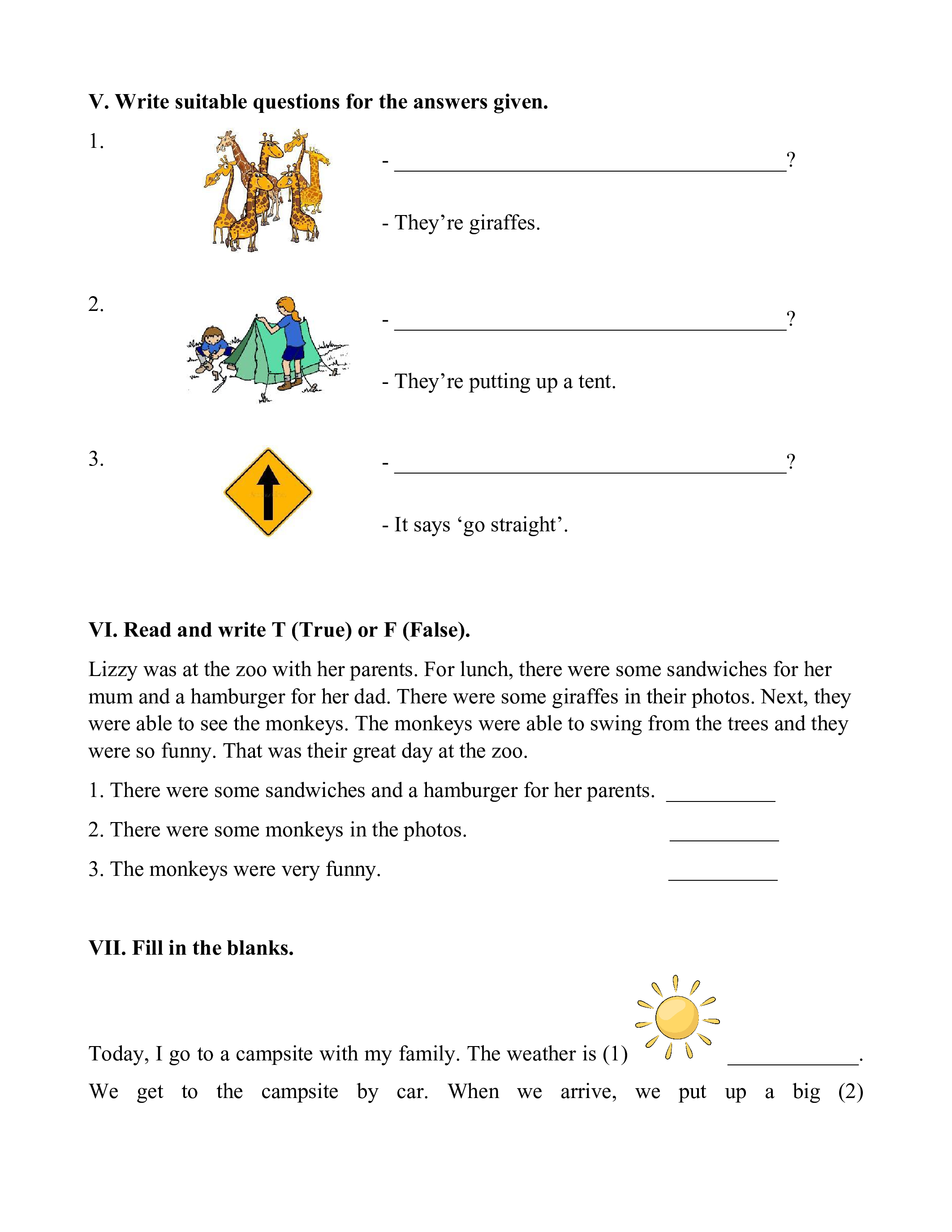 3. The monkeys were very funny. __________ VII. Fil in the blanks.