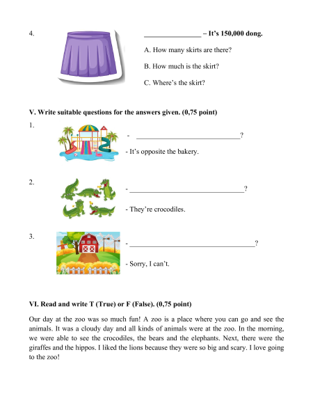 ________________ – It’s 150,000 dong. A. How many skirts are there? B. How much is the skirt? C. Where’s the skirt?