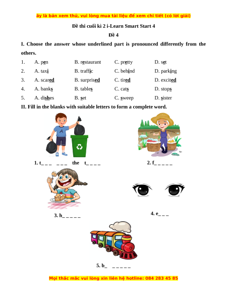 Đề thi cuối kì 2 i-Learn Smart Start 4 Đề 4