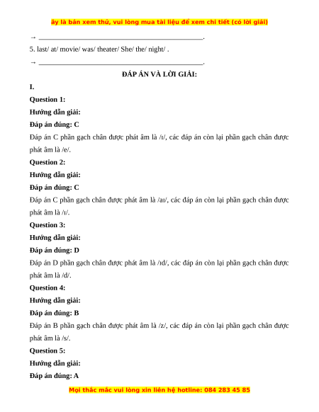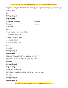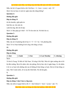 ĐÁP ÁN VÀ LỜI GIẢI: I. Question 1: Hướng dẫn giải: Đáp án đúng: C