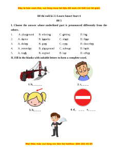 Đề thi cuối kì 2 i-Learn Smart Start 4 Đề 5