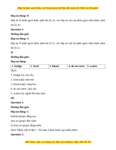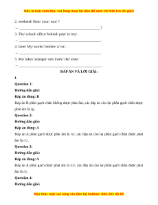 ĐÁP ÁN VÀ LỜI GIẢI: I. Question 1: Hướng dẫn giải: Đáp án đúng: B