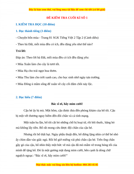 1. Đọc thành tiếng (3 điểm)