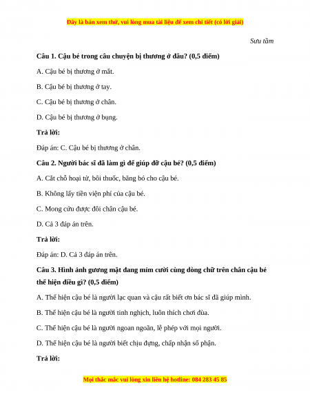 Câu 1. Cậu bé trong câu chuyện bị thương ở đâu? (0,5 điểm)