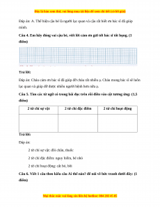 Câu 5. Tìm các từ ngữ có trong bài đọc trên rồi điền vào cột tương ứng: (1,5 điểm) 2 từ chỉ sự vật