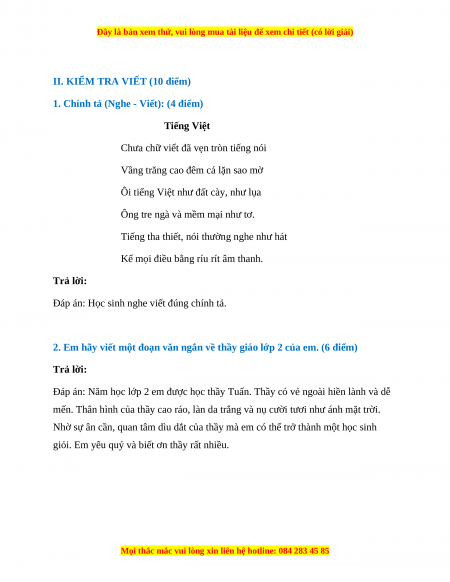 II. KIỂM TRA VIẾT (10 điểm)
