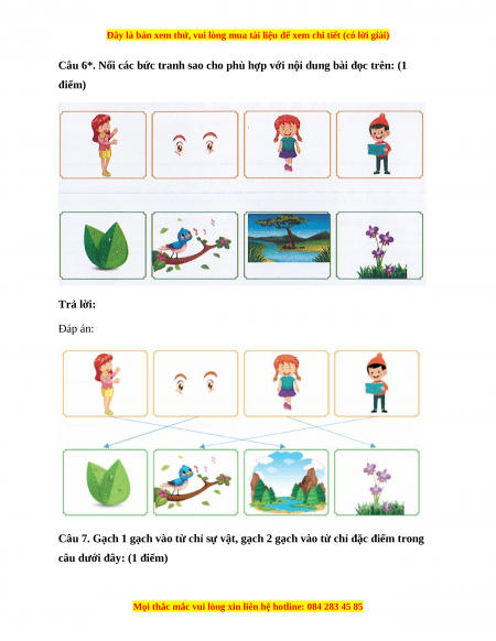 Câu 6*. Nối các bức tranh sao cho phù hợp với nội dung bài đọc trên: (1 điểm) Trả lời: Đáp án:
