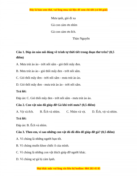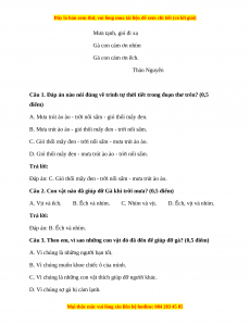 Câu 1. Đáp án nào nói đúng về trình tự thời tiết trong đoạn thơ trên? (0,5 điểm)