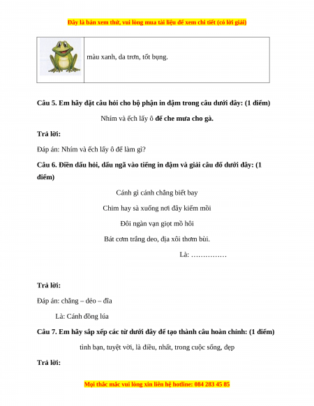 Câu 6. Điền dấu hỏi, dấu ngã vào tiếng in đậm và giải câu đố dưới đây: (1 điểm)