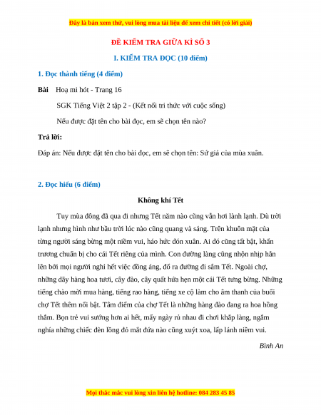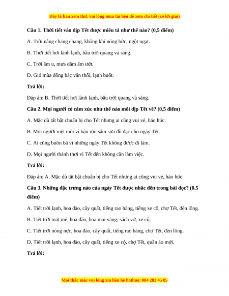 2. Đọc hiểu (6 điểm) Không khí Tết