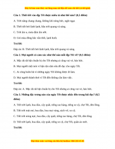 Câu 1. Thời tiết vào dịp Tết được miêu tả như thế nào? (0,5 điểm)