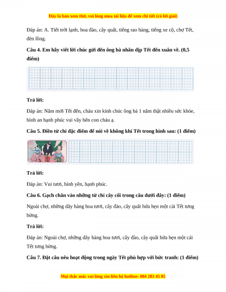 Câu 7. Đặt câu nêu hoạt động trong ngày Tết phù hợp với bức tranh: (1 điểm)