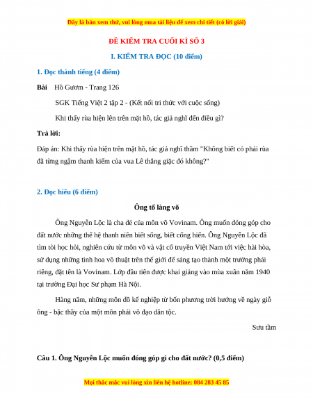 2. Đọc hiểu (6 điểm) Ông tổ làng võ
