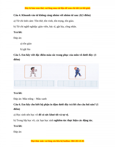 Câu 5. Em hãy viết đặc điểm màu sắc trang phục của môn võ dưới đây: (1 điểm) Trả lời: