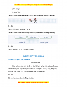 Câu 8. Em hãy chọn từ thích hợp dưới đây để điền vào ô trống: (1 điểm) Trả lời: