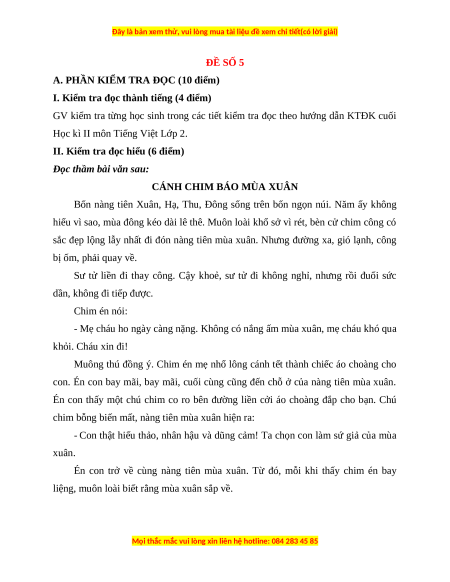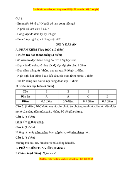 A. PHẦN KIỂM TRA ĐỌC (10 điểm)